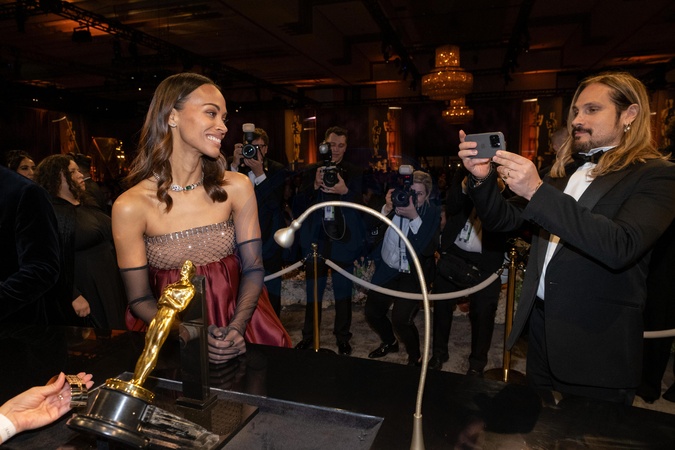 Zoe Saldaña gets their Oscar® engraved at the Governors Ball following the live ABC telecast of the 97th Oscars® at the Dolby Theatre at Ovation Hollywood in Los Angeles, CA, on Sunday, March 2, 2025., Credit:A.M.P.A.S. / Avalon