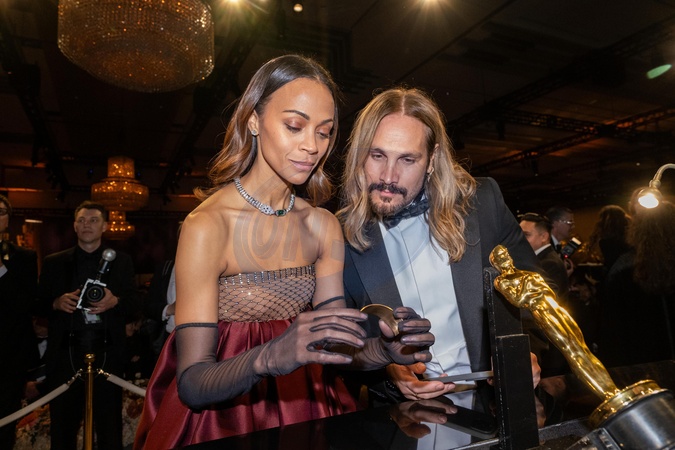 Zoe Saldaña gets their Oscar® engraved at the Governors Ball following the live ABC telecast of the 97th Oscars® at the Dolby Theatre at Ovation Hollywood in Los Angeles, CA, on Sunday, March 2, 2025., Credit:A.M.P.A.S. / Avalon