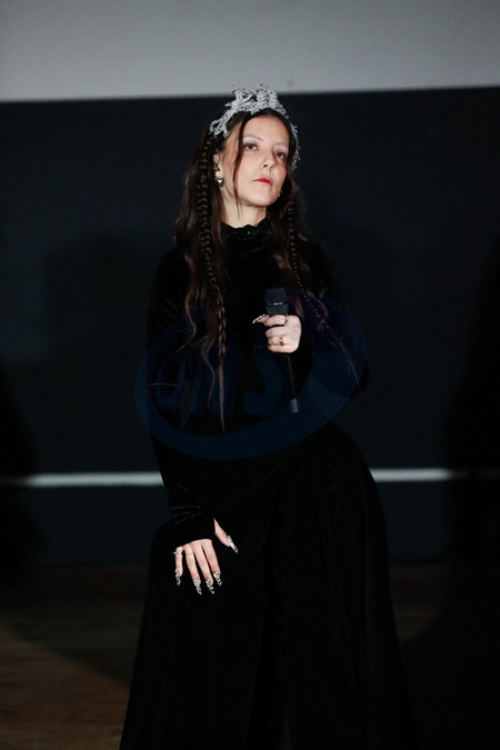 Camille Lellouche chante lors du défilé Weinsanto Mode Féminine Prêt-À-Porter Automne/Hiver 2025-20266 lors de la Fashion Week de Paris (PFW)