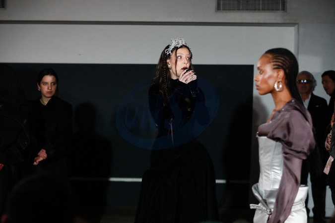 Camille Lellouche chante lors du défilé Weinsanto Mode Féminine Prêt-À-Porter Automne/Hiver 2025-20266 lors de la Fashion Week de Paris (PFW)