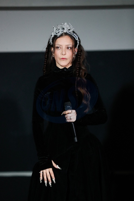Camille Lellouche chante lors du défilé Weinsanto Mode Féminine Prêt-À-Porter Automne/Hiver 2025-20266 lors de la Fashion Week de Paris (PFW)