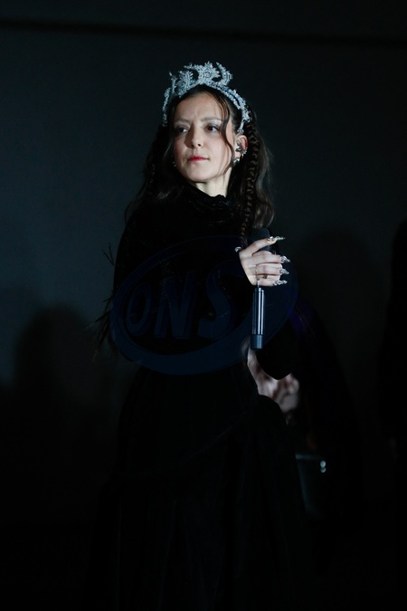 Camille Lellouche chante lors du défilé Weinsanto Mode Féminine Prêt-À-Porter Automne/Hiver 2025-20266 lors de la Fashion Week de Paris (PFW)
