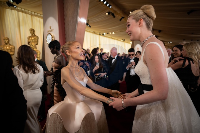 Ariana Grande and Elle Fanning arrive on the red carpet of the 97th Oscars® at the Dolby® Theatre at Ovation Hollywood on Sunday, March 2, 2025., Credit:A.M.P.A.S. / Avalon