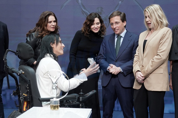 Paralympic medallist Teresa Perales, Katarina Witt, Laureus Academy Member, Isabel Diaz Ayuso, President of the Madrid Regional Government, Jose Luis Martinez Almeida, Mayor of Madrid and Nadia Comaneci, Laureus Academy Member during the Laureus World Sports Awards 2025 nominations announcement. March 3, 2025. © Alterphotos / PsnewZ / Bestimage