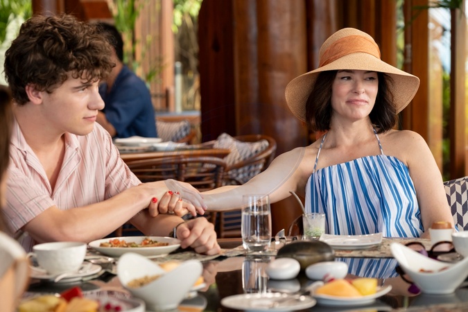 Sam Nivola as Lochlan Ratliff, Parker Posey as Victoria Ratliff, "The White Lotus" Season 3 (2025), Credit:Fabio Lovino/HBO / Avalon
