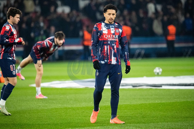 Marquinhos (Paris SG) - 1/8e de finale aller de la Ligue des champions 2024-25 entre le PSG contre Liverpool (0-1) au Parc des Princes à Paris le 5 mars 2025. 1/8th final first leg of the 2024-25 Champions League between PSG against Liverpool (0-1) at the Parc des Princes in Paris on March 5, 2025.