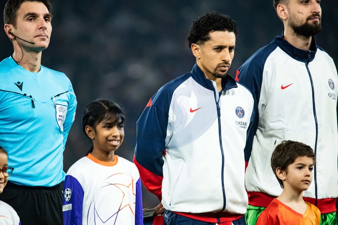 Marquinhos (Paris SG) - 1/8e de finale aller de la Ligue des champions 2024-25 entre le PSG contre Liverpool (0-1) au Parc des Princes à Paris le 5 mars 2025. 1/8th final first leg of the 2024-25 Champions League between PSG against Liverpool (0-1) at the Parc des Princes in Paris on March 5, 2025.