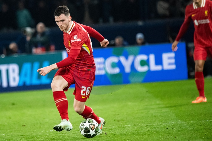 Andrew Robertson (FC Liverpool) - 1/8e de finale aller de la Ligue des champions 2024-25 entre le PSG contre Liverpool (0-1) au Parc des Princes à Paris le 5 mars 2025. 1/8th final first leg of the 2024-25 Champions League between PSG against Liverpool (0-1) at the Parc des Princes in Paris on March 5, 2025.