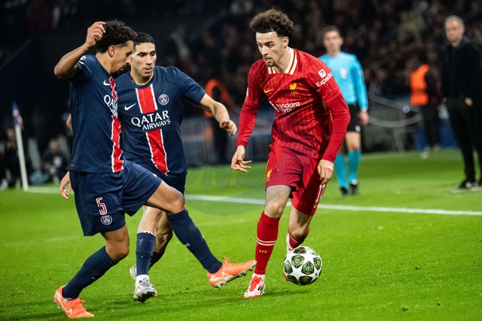 Curtis Jones (FC Liverpool) - 1/8e de finale aller de la Ligue des champions 2024-25 entre le PSG contre Liverpool (0-1) au Parc des Princes à Paris le 5 mars 2025. 1/8th final first leg of the 2024-25 Champions League between PSG against Liverpool (0-1) at the Parc des Princes in Paris on March 5, 2025.