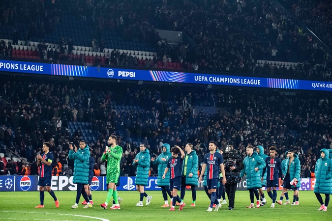 Déception des joueurs du Paris SG aprés la fin du match - 1/8e de finale aller de la Ligue des champions 2024-25 entre le PSG contre Liverpool (0-1) au Parc des Princes à Paris le 5 mars 2025. 1/8th final first leg of the 2024-25 Champions League between PSG against Liverpool (0-1) at the Parc des Princes in Paris on March 5, 2025.