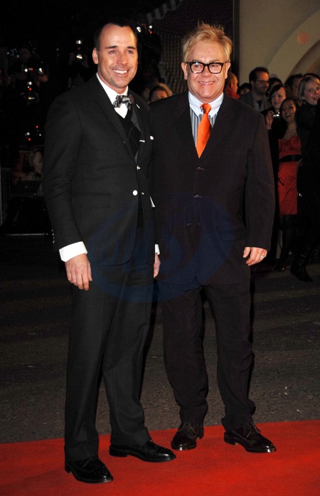 David Furnish i Elton John na premierze filmu "Australia", Londyn