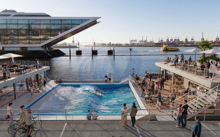 Pictures must credit: Meyer Floating Solutions/Floating Wave Surf lovers will soon be able to enjoy their favourite pastime — moored on a river. German company Floating Wave is to install a first-of-its-kind floating surf platform designed to bring an authentic surfing experience to towns and cities. The platform is set to be installed in Hamburg on the river Elbe. In 2026. The idea is that it will help transform under-utilised harbour areas into a vibrant hub for sports, recreation, and tourism. Floating Wave says the system offers a sustainable and accessible way for city dwellers to experience high-quality surfing—without needing access to the ocean. The platform will be built offsite in a controlled environment to minimise construction disruption while ensuring top-tier quality. Designed to be both scalable and adaptable, the concept is expected to be deployed in various urban and coastal settings around the world. Floating Wave is envisioned as a year-round destination for both surfers and spectators. The structure will feature a restaurant, bar, fitness centre, and surf shop, catering to visitors "seeking a mix of adrenaline, leisure, and social experiences.” The platform is being built by Finland-based Meyer Floating Solutions, which specialises in floating infrastructure. Picture supplied by JLPPA