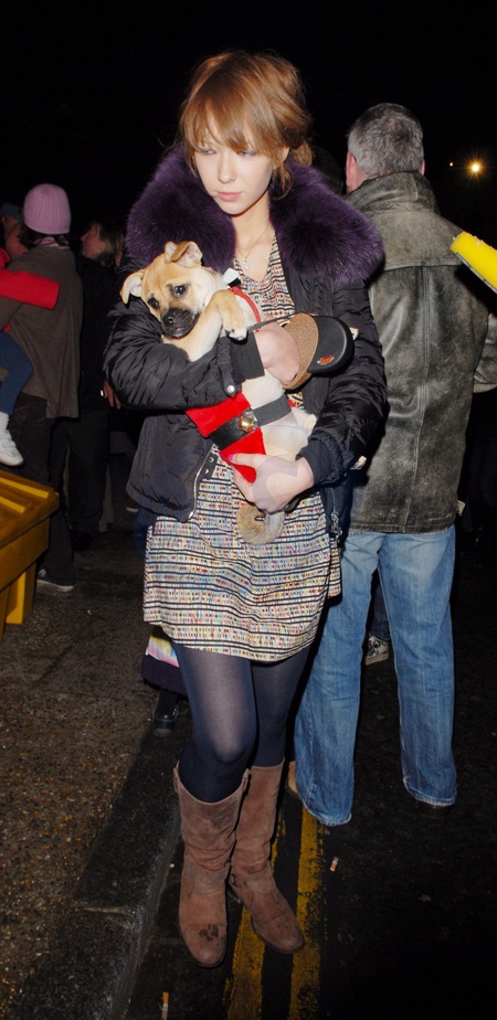 Ronnie Wood i Ekaterina Ivanova spaceruja z pieskiem, Londyn
