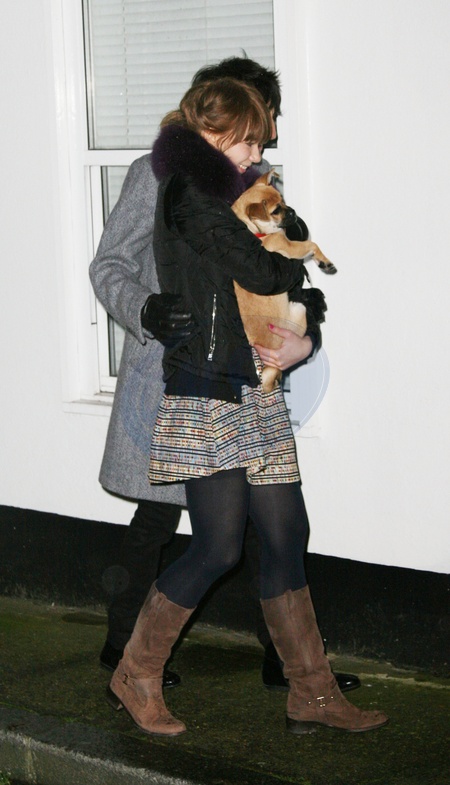 Ronnie Wood i Ekaterina Ivanova spaceruja z pieskiem, Londyn