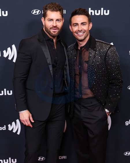 BEVERLY HILLS, LOS ANGELES, CALIFORNIA, USA - MARCH 27: Jaymes Vaughan and husband Jonathan Bennett arrive at the 36th Annual GLAAD Media Awards Los Angeles held at The Beverly Hilton Hotel on March 27, 2025 in Beverly Hills, Los Angeles, California, United States., Credit:Xavier Collin / Avalon