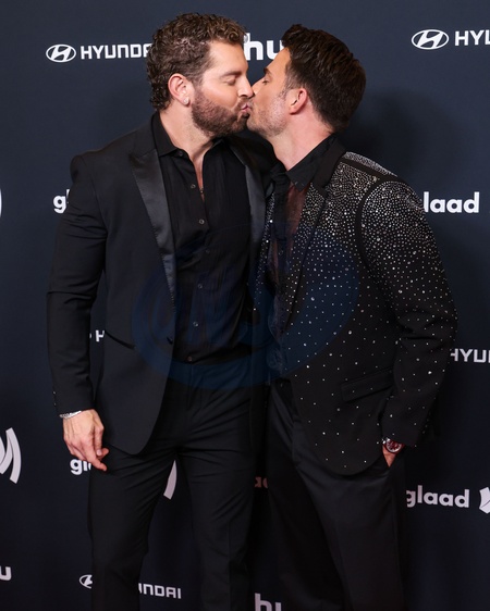 BEVERLY HILLS, LOS ANGELES, CALIFORNIA, USA - MARCH 27: Jaymes Vaughan and husband Jonathan Bennett arrive at the 36th Annual GLAAD Media Awards Los Angeles held at The Beverly Hilton Hotel on March 27, 2025 in Beverly Hills, Los Angeles, California, United States., Credit:Xavier Collin / Avalon