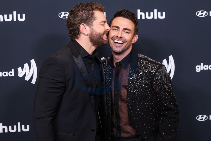 BEVERLY HILLS, LOS ANGELES, CALIFORNIA, USA - MARCH 27: Jaymes Vaughan and husband Jonathan Bennett arrive at the 36th Annual GLAAD Media Awards Los Angeles held at The Beverly Hilton Hotel on March 27, 2025 in Beverly Hills, Los Angeles, California, United States., Credit:Xavier Collin / Avalon