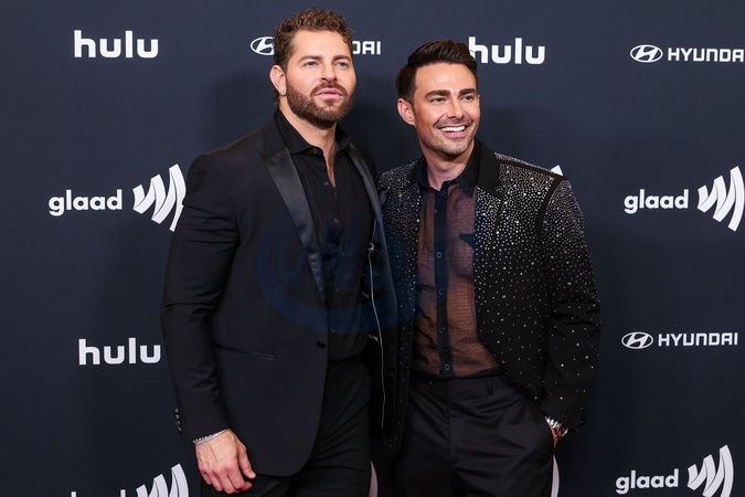 BEVERLY HILLS, LOS ANGELES, CALIFORNIA, USA - MARCH 27: Jaymes Vaughan and husband Jonathan Bennett arrive at the 36th Annual GLAAD Media Awards Los Angeles held at The Beverly Hilton Hotel on March 27, 2025 in Beverly Hills, Los Angeles, California, United States., Credit:Xavier Collin / Avalon
