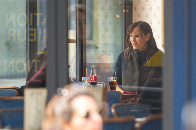 Exclusif - Jennifer Garner se détend en allant boire un coca zéro dans la brasserie Le Nesle pendant le tournage sur le tournage de la saison 2 de la série The Last Thing He Told Me (Apple TV) dans le 16ème arrondissement de Paris, France, le 28 mars 2025. © Yehiel Chekroune/Bestimage Exclusive - Jennifer Garner relaxes with a Coke Zero at Brasserie Le Nesle while filming on the set of season 2 of the Apple TV series The Last Thing He Told Me in the 16th arrondissement of Paris, France, on March 28, 2025.