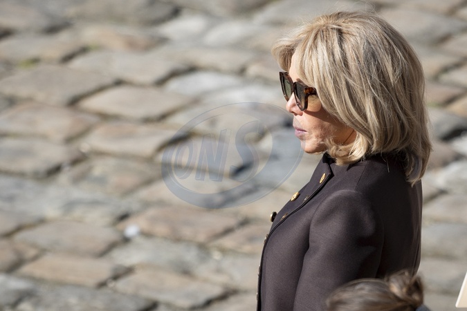 Cérémonie officielle de bienvenue de leurs Majestés le roi Frederik et la reine Mary de Danemark par le président de la République Emmanuel Macron et de sa femme la Première Dame Brigitte Macron à l'Hôtel national des Invalides à Paris