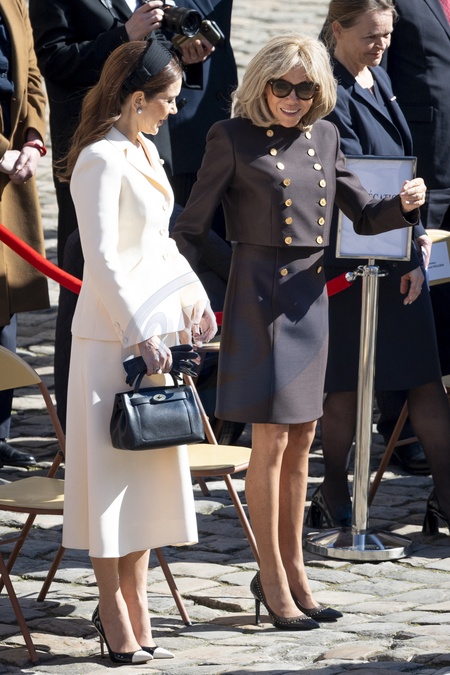 Cérémonie officielle de bienvenue de leurs Majestés le roi et la reine Mary de Danemark par le président de la République française et de sa femme la Première Dame française Brigitte Macron à l'Hôtel national des Invalides à Paris, France, le 31 mars 2025. © Cyril Moreau/Bestimage Official welcoming ceremony of Their Majesties King and Queen Mary of Denmark by French President and his wife French First Lady Brigitte Macron at the Hôtel National des Invalides in Paris, France, March 31, 2025.