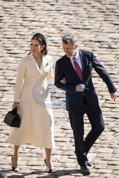 Oficjalna ceremonia powitania Ich Wysokości Króla Fryderyka i Królowej Danii Marii przez Prezydenta Emmanuela Macrona i jego żonę, Pierwszą Damę Brigitte Macron, w paryskim Hôtel National des Invalides