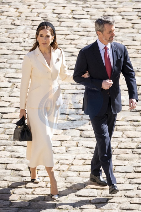 Oficjalna ceremonia powitania Ich Wysokości Króla Fryderyka i Królowej Danii Marii przez Prezydenta Emmanuela Macrona i jego żonę, Pierwszą Damę Brigitte Macron, w paryskim Hôtel National des Invalides