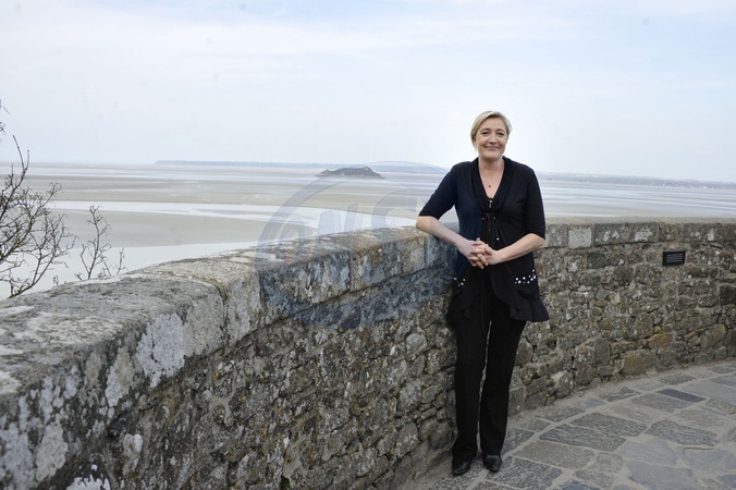 Archives - Deplacement de Marine Le Pen presidente du Front National candidate a la presidentielle de 2012 au Mont Saint Michel - Marine Le Pen Marine Le Pen condamnée à quatre ans d'emprisonnement, dont deux ans ferme et cinq ans d'inéligibilité dans l'affaire des assistants parlementaires de l'ancien Front national (Rassemblement national), le 31 mars 2025. File photos - Marine Le Pen Marine Le Pen sentenced to four years in prison, including two years in prison and five years of ineligibility in the case of parliamentary assistants of the former National Front (National Rally), on March 31th, 2025.