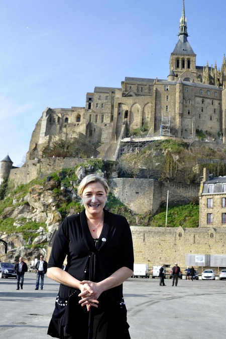 Archives - Deplacement de Marine Le Pen presidente du Front National candidate a la presidentielle de 2012 au Mont Saint Michel - Marine Le Pen Marine Le Pen condamnée à quatre ans d'emprisonnement, dont deux ans ferme et cinq ans d'inéligibilité dans l'affaire des assistants parlementaires de l'ancien Front national (Rassemblement national), le 31 mars 2025. File photos - Marine Le Pen Marine Le Pen sentenced to four years in prison, including two years in prison and five years of ineligibility in the case of parliamentary assistants of the former National Front (National Rally), on March 31th, 2025.