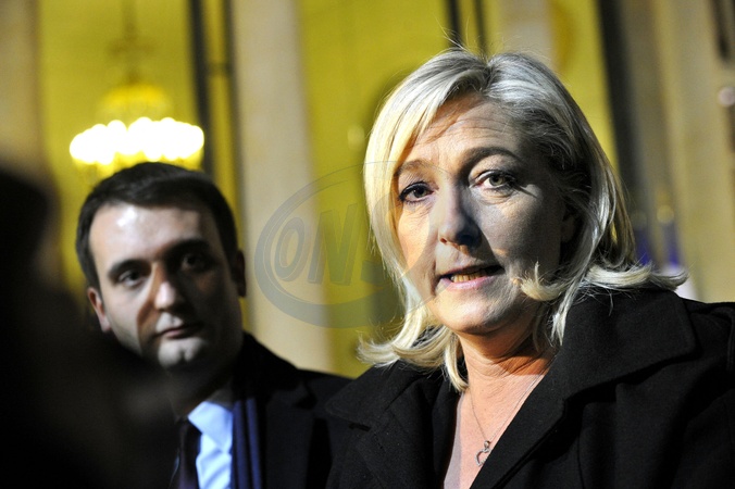 Archives - Entretien dans le cadre des consultations des partis politique sur la renovation politique de la commission Jospin entre le President de la Republique Francaise et Marine Le Pen Presidente du Front National a l Elysee en presence de Florian Philippot vice- president du Front National - Marine Le Pen Marine Le Pen condamnée à quatre ans d'emprisonnement, dont deux ans ferme et cinq ans d'inéligibilité dans l'affaire des assistants parlementaires de l'ancien Front national (Rassemblement national), le 31 mars 2025. File photos - Marine Le Pen Marine Le Pen sentenced to four years in prison, including two years in prison and five years of ineligibility in the case of parliamentary assistants of the former National Front (National Rally), on March 31th, 2025.