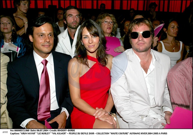 "ARUN NAYAR" LIZ (ELIZABETH) HURLEY" "VAL KILMER" - PEOPLE DU DEFILE DIOR - COLLECTION "HAUTE COUTURE" AUTOMNE HIVER 2004 2005 A PARIS MODE FEMININ "PLAN SERRE" COMEDIENNE ACTRICE HOMME COMEDIEN ACTEUR "LUNETTES DE SOLEIL"