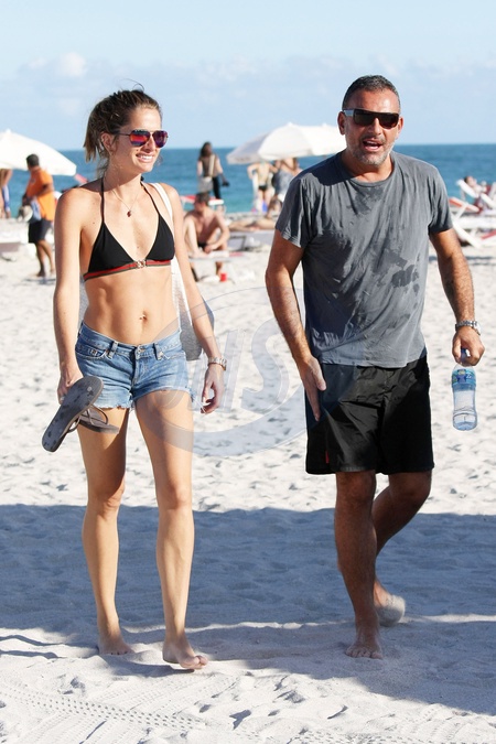 Christian Audigier ze swoja dziewczyna na plazy w Miami