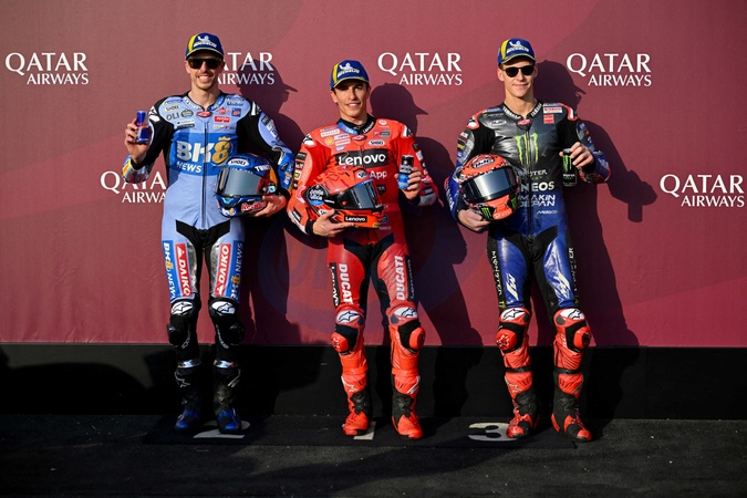 MARQUEZ Alex (spa), Gresini Racing MotoGP, Ducati Desmosedici GP24, portrait MARQUEZ Marc (spa), Ducati Lenovo Team, Ducati Desmosedici GP25, portrait QUARTARARO Fabio (fra), Monster Energy Yamaha MotoGP, Yamaha YZR-M1, portrait after the qualifications during the 2025 MotoGP Qatar Airways Grand Prix of Qatar on the Losail International Circuit from April 11 to 13, in Lusail, Qatar -
