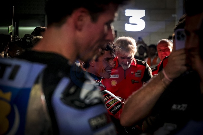 MARQUEZ Marc (spa), Ducati Lenovo Team, Ducati Desmosedici GP25, portrait podium, portrait Sprint race during the 2025 MotoGP Qatar Airways Grand Prix of Qatar on the Losail International Circuit from April 11 to 13, in Lusail, Qatar -