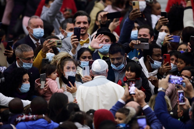 Le pape François et les enfants du dispensaire Santa Maria au Vatican