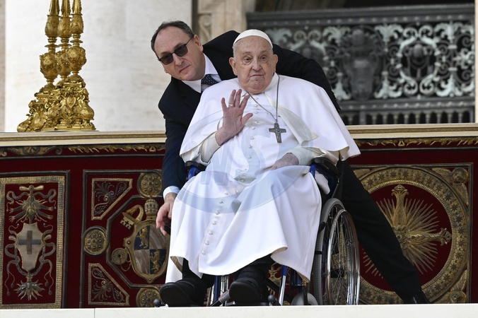 Le pape François lors d'une apparition surprise à la fin de la messe du dimanche des Rameaux au Vatican