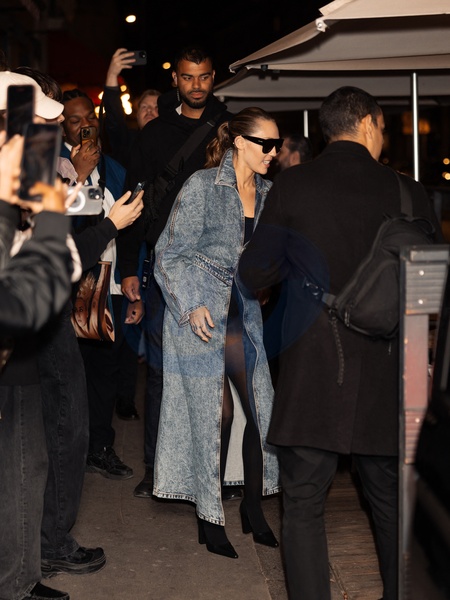 Miley Cyrus, jej partner Maxx Morando i Montassar Alaya opuszczają restaurację Giusé Trattoria w Paryżu.