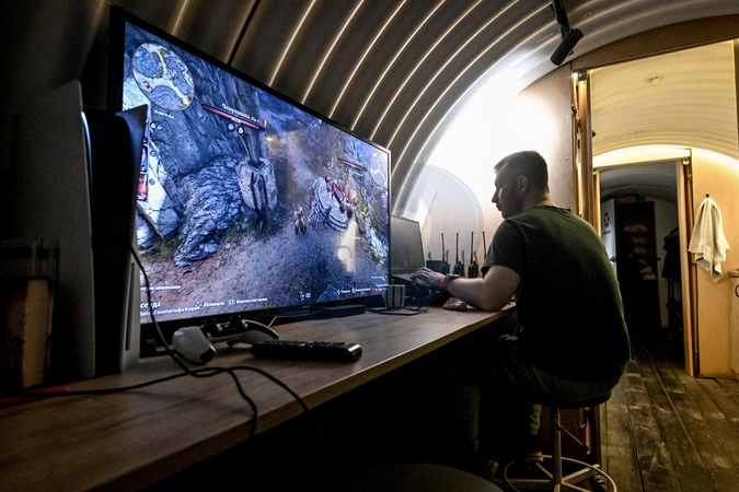 A man works on the laptop in a waiting room in a surgical unit of an underground hospital in an area of hostilities on April 15, 2025. (Photo by Dmytro Smolienko/Ukrinform), Credit:Dmytro Smolienko / Avalon