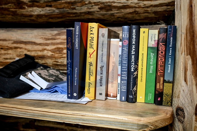 Books line the shelves in a surgical unit of an underground hospital in an area of hostilities on April 15, 2025. (Photo by Dmytro Smolienko/Ukrinform), Credit:Dmytro Smolienko / Avalon