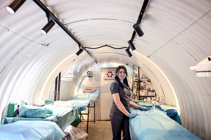 Nurse Snizhana stays in a surgical unit of an underground hospital in an area of hostilities on April 15, 2025. (Photo by Dmytro Smolienko/Ukrinform), Credit:Dmytro Smolienko / Avalon