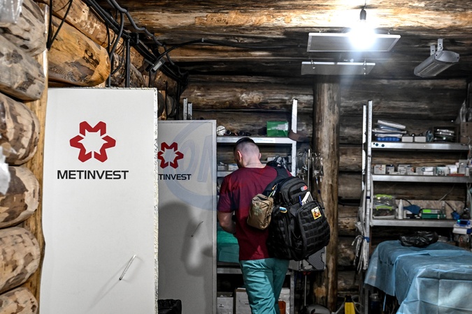 A healthcare worker carries a backpack in a surgical unit of an underground hospital in an area of hostilities on April 15, 2025. (Photo by Dmytro Smolienko/Ukrinform), Credit:Dmytro Smolienko / Avalon
