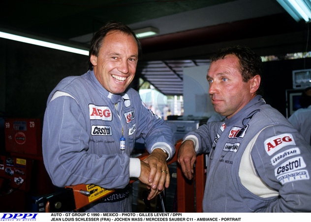 Archives - L'ancien pilote allemand Jochen Mass, vainqueur des 24 Heures du Mans en 1989, est mort à l'âge de 78 ans le 4 mai 2025. © DPPI / PsnewZ / Bestimage File Photos - AUTO - GT GROUP C 1990 - MEXICO - PHOTO : GILLES LEVENT / DPPI JEAN LOUIS SCHLESSER (FRA) - JOCHEN MASS / MERCEDES SAUBER C11 - AMBIANCE - PORTRAIT