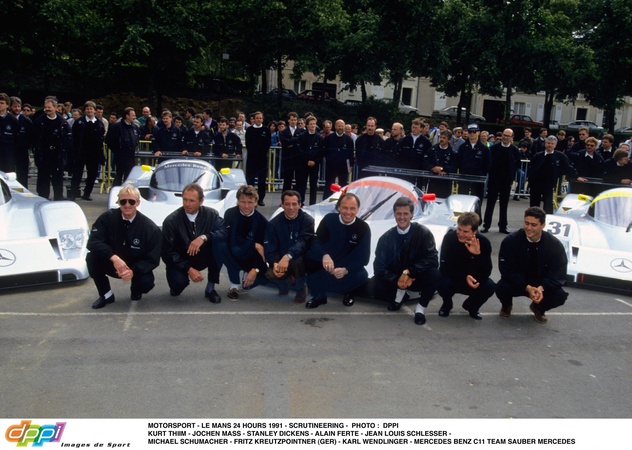 Archives - L'ancien pilote allemand Jochen Mass, vainqueur des 24 Heures du Mans en 1989, est mort à l'âge de 78 ans le 4 mai 2025. © DPPI / PsnewZ / Bestimage File Photos - MOTORSPORT - LE MANS 24 HOURS 1991 - SCRUTINEERING - PHOTO : DPPI KURT THIIM - JOCHEN MASS - STANLEY DICKENS - ALAIN FERTE - JEAN LOUIS SCHLESSER - MICHAEL SCHUMACHER - FRITZ KREUTZPOINTNER (GER) - KARL WENDLINGER - MERCEDES BENZ C11 TEAM SAUBER MERCEDES - AMBIANCE - PORTRAIT