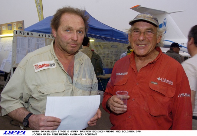 Archives - L'ancien pilote allemand Jochen Mass, vainqueur des 24 Heures du Mans en 1989, est mort à l'âge de 78 ans le 4 mai 2025. © DPPI / PsnewZ / Bestimage File Photos - AUTO - DAKAR 2005 - STAGE 12 - KIFFA . BAMAKO 12/01/2005 - PHOTO : GIGI SOLDANO / DPPI JOCHEN MASS - RENE METGE - AMBIANCE - PORTRAIT