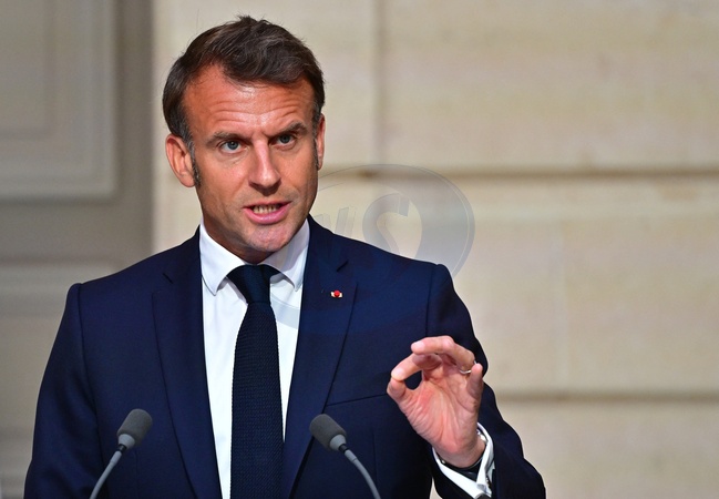 Prezydent Francji Emmanuel Macron i nowy kanclerz Niemiec Friedrich Merz podczas wspólnej konferencji prasowej w Pałacu Elizejskim w Paryżu
