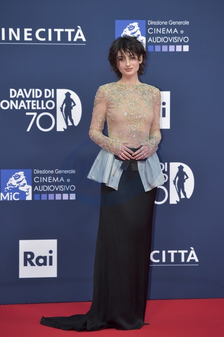 Italy, Rome, May 7th, 2025 - 70th David di Donatello Award Ceremony Red carpetPictured: Tecla Insolia winenr for the best actress, Credit:Fabio Mazzarella / Avalon