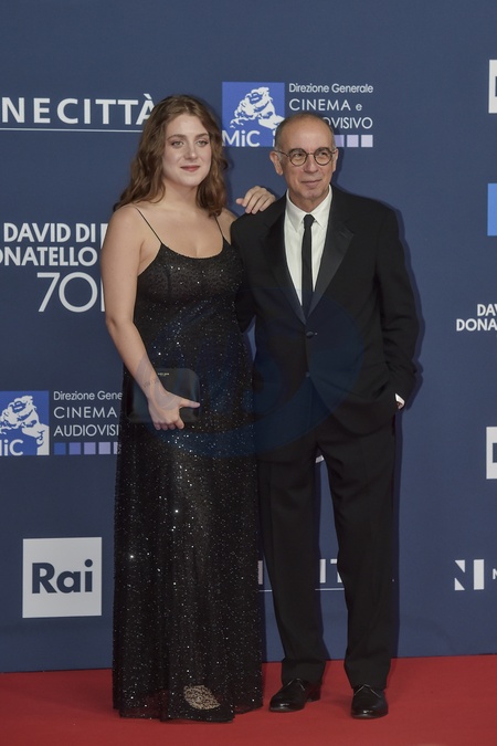 Italy, Rome, May 7th, 2025 - 70th David di Donatello Award Ceremony Red carpetPictured: Giuseppe Tornatore with daughter Marianna, Credit:Fabio Mazzarella / Avalon