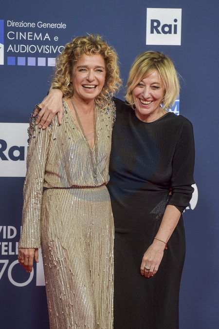 Italy, Rome, May 7th, 2025 - 70th David di Donatello Award Ceremony Red carpetPictured: Valeria Golino winner for the best non original screenplay and Valeria Bruni Tedeschi for the best supporting actress, Credit:Fabio Mazzarella / Avalon