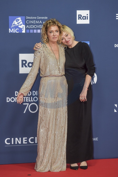 Italy, Rome, May 7th, 2025 - 70th David di Donatello Award Ceremony Red carpetPictured: Valeria Golino winner for the best non original screenplay and Valeria Bruni Tedeschi for the best supporting actress, Credit:Fabio Mazzarella / Avalon