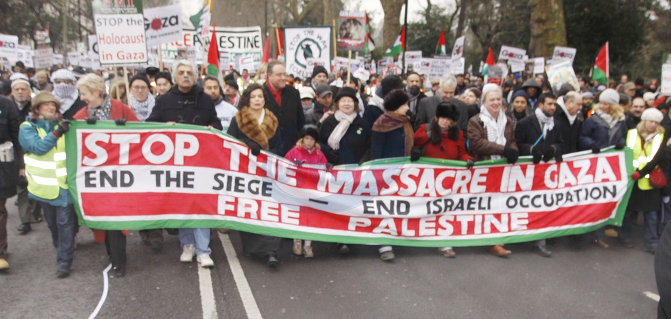 Bianca Jagger na demonstracji przed Ambasada Izraela w Londynie